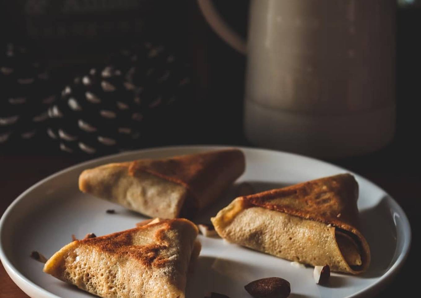 - Dressage : Découper les crêpes en deux dans la verticale. Ramener les côtés extérieurs (ceux qui sont arrondis) vers l'intérieur (le côté le plus long et droit).